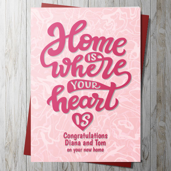 The Home is Where the Heart is Pink Heart Card is a really beautiful, large, new home card you can personalise with the persons name. For the inside: If you would like us to leave a message (from you) simply type your message in the “Card Message” box.